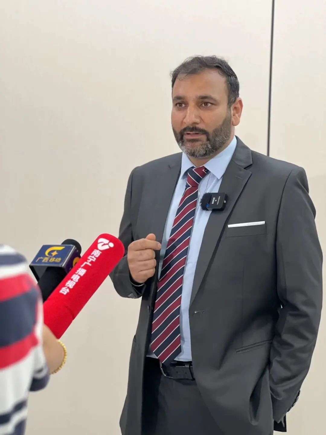為支持皇氏集團(tuán)水牛奶產(chǎn)業(yè)發(fā)展工作,巴基斯坦駐廣州總領(lǐng)事館商務(wù)參贊穆罕默德先生受邀蒞臨展位現(xiàn)場(chǎng)并接受了現(xiàn)場(chǎng)媒體的采訪,穆罕默德先生表示,皇氏集團(tuán)是中國(guó)最大的水牛奶企業(yè),公司的產(chǎn)業(yè)發(fā)展戰(zhàn)略規(guī)劃與巴基斯坦的水牛產(chǎn)業(yè)發(fā)展規(guī)劃十分契合。中國(guó)有著巨大的水牛奶市場(chǎng),奶源卻得不到滿足,他表示很可惜?;谥邪陀押藐P(guān)系,巴基斯坦愿意與中國(guó)人民分享我們的黑色黃金尼里拉菲水牛,讓更多的中國(guó)人能喝到美味又營(yíng)養(yǎng)的水牛奶。現(xiàn)在,皇氏集團(tuán)的團(tuán)隊(duì)在巴基斯坦用胚胎技術(shù)與巴基斯坦科學(xué)家一起繁殖精英水牛,這對(duì)企業(yè)、對(duì)產(chǎn)業(yè)和對(duì)兩國(guó)人民都是好事,相信皇氏集團(tuán)水牛引種項(xiàng)目會(huì)成為中巴農(nóng)業(yè)合作的示范工程。穆罕默德先生對(duì)未來(lái)雙方的深入合作表示期待,也?;适霞瘓F(tuán)本次展會(huì)能圓滿成功,讓更多人民認(rèn)識(shí)水牛奶、了解水牛奶、享受水牛奶!