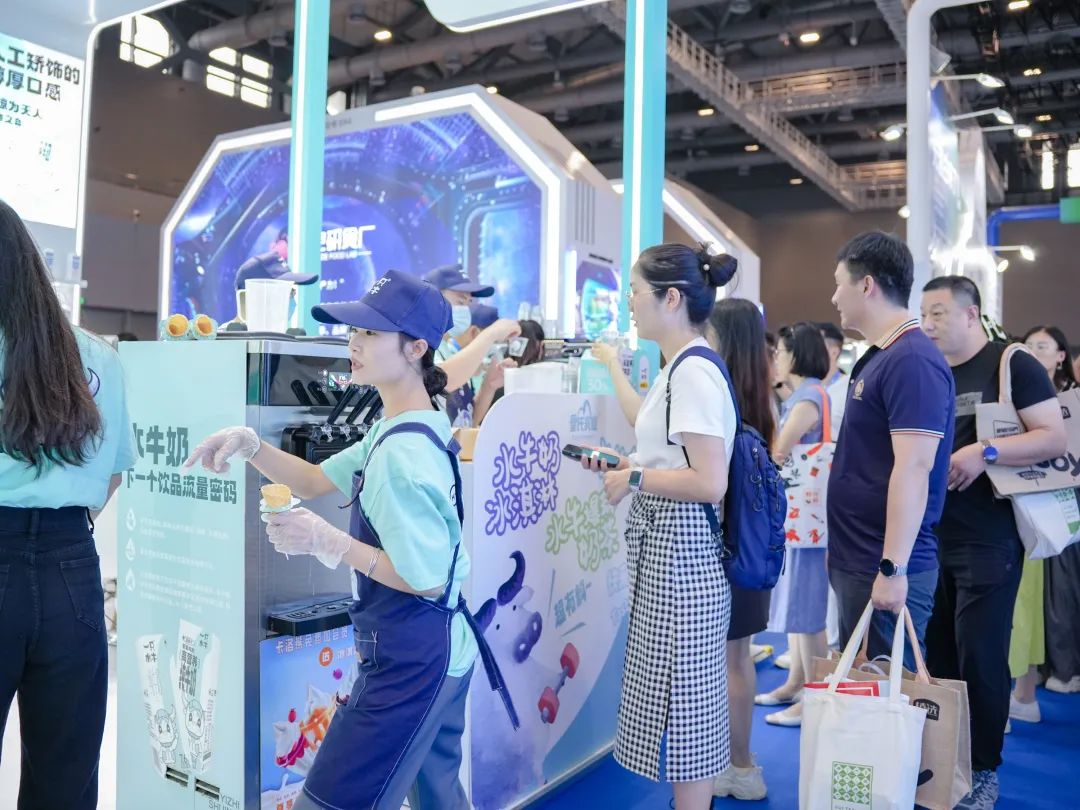 現(xiàn)場(chǎng)用水牛奶調(diào)制的拿鐵、奶茶、冰淇淋,征服了一波又一波來(lái)訪者的味蕾,讓展位始終保持著人聲鼎沸的火熱態(tài)勢(shì)?,F(xiàn)場(chǎng)人流涌動(dòng),來(lái)自全國(guó)各地的眾多參展商、經(jīng)銷商和消費(fèi)者接踵而至,聚焦于皇氏水牛奶,并一一詳細(xì)品鑒、咨詢,贊不絕口。