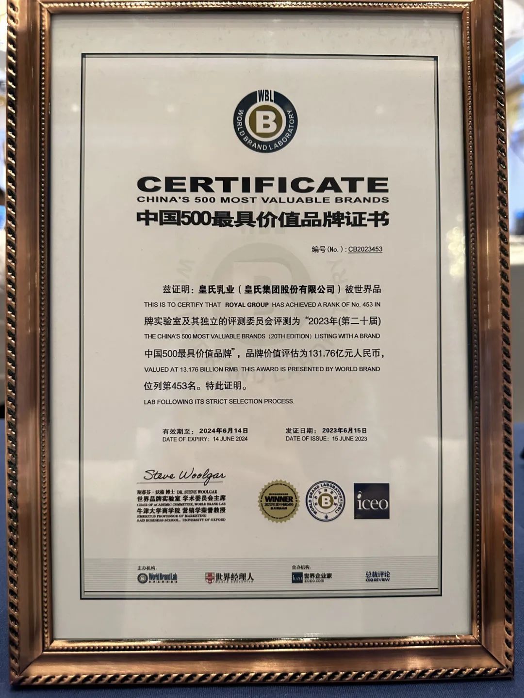 此次榮登“中國500最具價值品牌”榜單,不僅反映了公眾對“皇氏乳業(yè)”品牌實力、產(chǎn)品品質(zhì)、服務(wù)質(zhì)量等多方面給予的高度認(rèn)可,也是企業(yè)在發(fā)展過程中牢筑質(zhì)量根基、不斷變革創(chuàng)新,致力提升自主品牌影響力和競爭力所取得的成果。