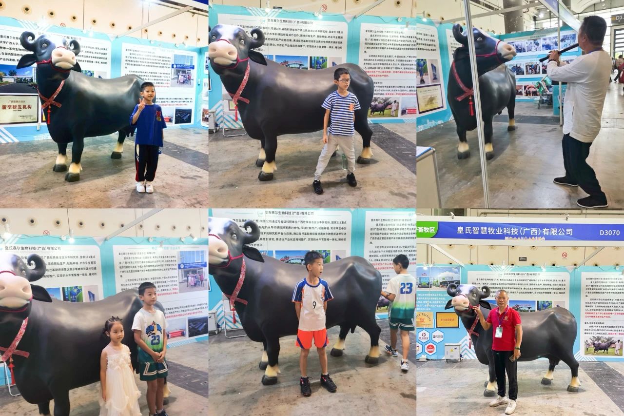 為了讓參展觀眾更直觀的了解優(yōu)質(zhì)奶水牛種質(zhì)資源,在現(xiàn)場展位特別放置了巴基斯坦尼里拉菲純種母水牛和牛犢模型,模型十分引人注目,引來不少市民和小朋友駐足拍照和打卡。