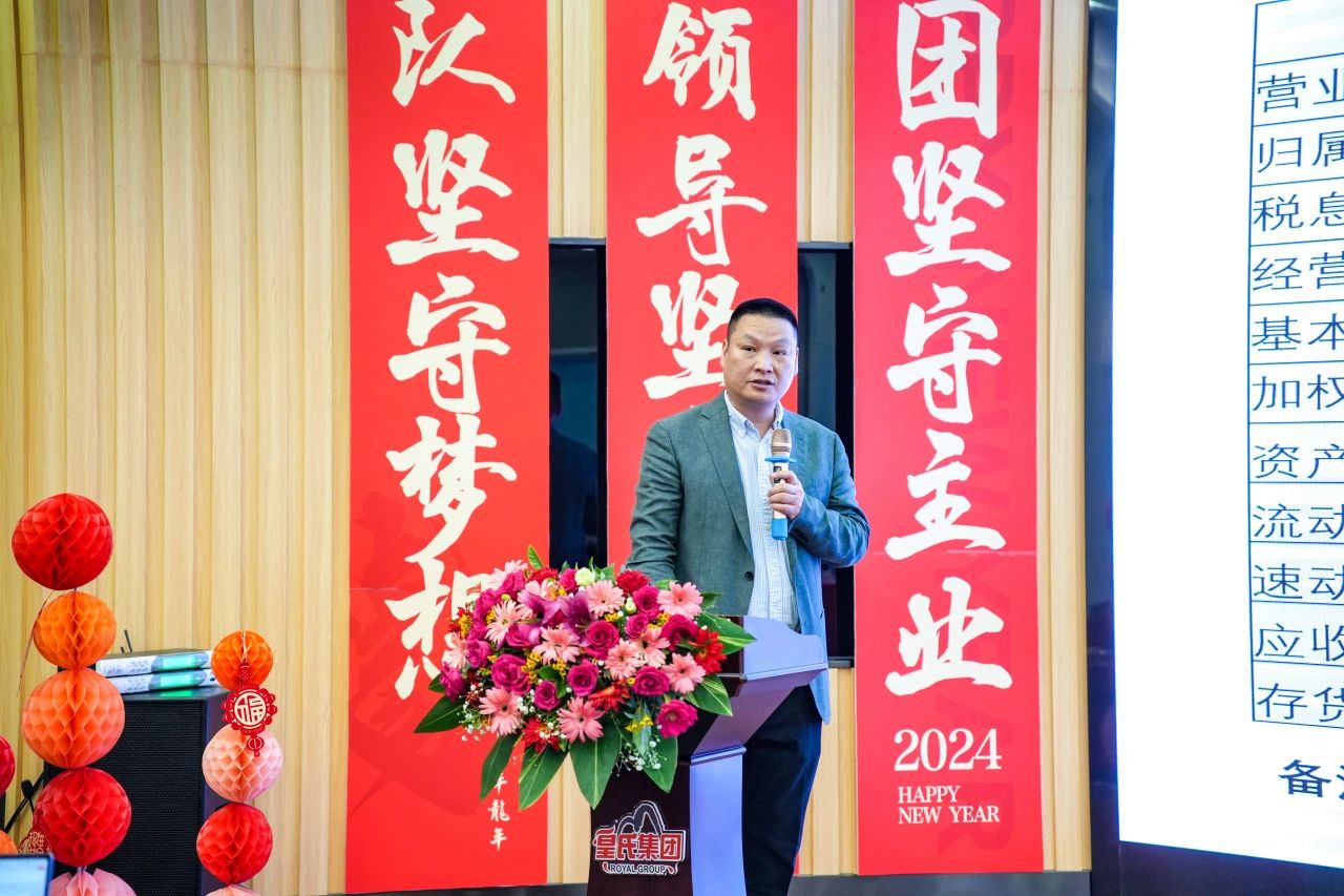 新年伊始,萬象更新。為對(duì)過去的一年工作做全面而深入的復(fù)盤,分析面臨形勢(shì),共同探討和謀劃集團(tuán)未來的發(fā)展戰(zhàn)略,著力破解突出矛盾,全力奮進(jìn)高質(zhì)量發(fā)展,2月3日,皇氏集團(tuán)召開主題為“堅(jiān)守與布局”的2024年度工作會(huì)議。集團(tuán)董事長(zhǎng)黃嘉棣、副董事長(zhǎng)何海晏、聯(lián)席總裁王鶴飛等公司領(lǐng)導(dǎo),各分子公司總經(jīng)理、財(cái)務(wù)負(fù)責(zé)人及骨干人員等共計(jì)120余人參加了本次會(huì)議。