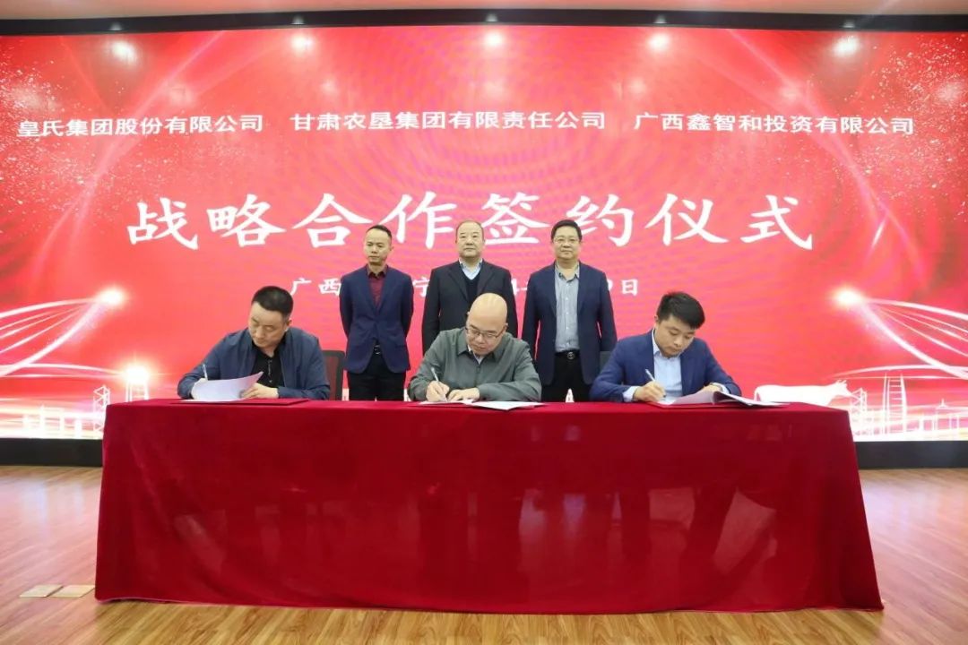 在實(shí)現(xiàn)“強(qiáng)強(qiáng)聯(lián)合、互利共贏;降本增效、持續(xù)發(fā)展”的共同戰(zhàn)略目標(biāo)上,皇氏集團(tuán)、甘肅農(nóng)墾集團(tuán)、廣西鑫智和投資有限公司經(jīng)友好協(xié)商,本著長期合作、優(yōu)勢互補(bǔ)的原則,達(dá)成共識,構(gòu)建可持續(xù)發(fā)展的戰(zhàn)略合作伙伴關(guān)系。在所有與會人員的見證下,皇氏集團(tuán)聯(lián)席總裁王鶴飛,甘肅農(nóng)墾集團(tuán)運(yùn)營管理部部長郭守斌,廣西鑫智和投資有限公司總經(jīng)理蘇牧共同簽訂三方戰(zhàn)略合作協(xié)議。