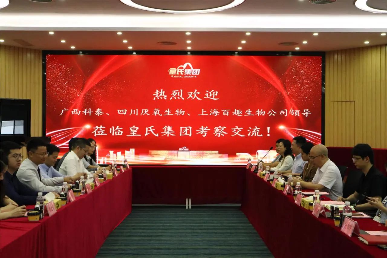 4月18日上午,四川厭氧生物科技有限責任公司(以下簡稱“四川厭氧生物”)、上海百趣生物醫(yī)學科技有限公司(以下簡稱“上海百趣生物”)和廣西科泰科技信息咨詢有限公司(以下簡稱“廣西科泰”)到訪皇氏乳業(yè)集團考察交流,就深入大健康產(chǎn)品研究合作與技術(shù)創(chuàng)新等問題開展座談交流并簽訂戰(zhàn)略合作協(xié)議?;适霞瘓F聯(lián)席總裁、皇氏乳業(yè)集團總經(jīng)理王鶴飛等領(lǐng)導熱情接待并出席簽訂儀式。