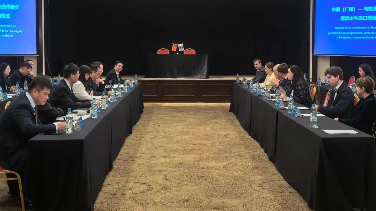 訪問(wèn)期間,皇氏集團(tuán)一行應(yīng)邀參加中國(guó)(廣西)-烏拉圭農(nóng)業(yè)合作推介會(huì),中國(guó)駐烏拉圭大使黃亞中、廣西壯族自治區(qū)政府許顯輝副主席、烏拉圭牧農(nóng)漁業(yè)部副部長(zhǎng)布法等領(lǐng)導(dǎo)出席本次活動(dòng),黃嘉棣董事長(zhǎng)作為企業(yè)代表在會(huì)上發(fā)表講話。