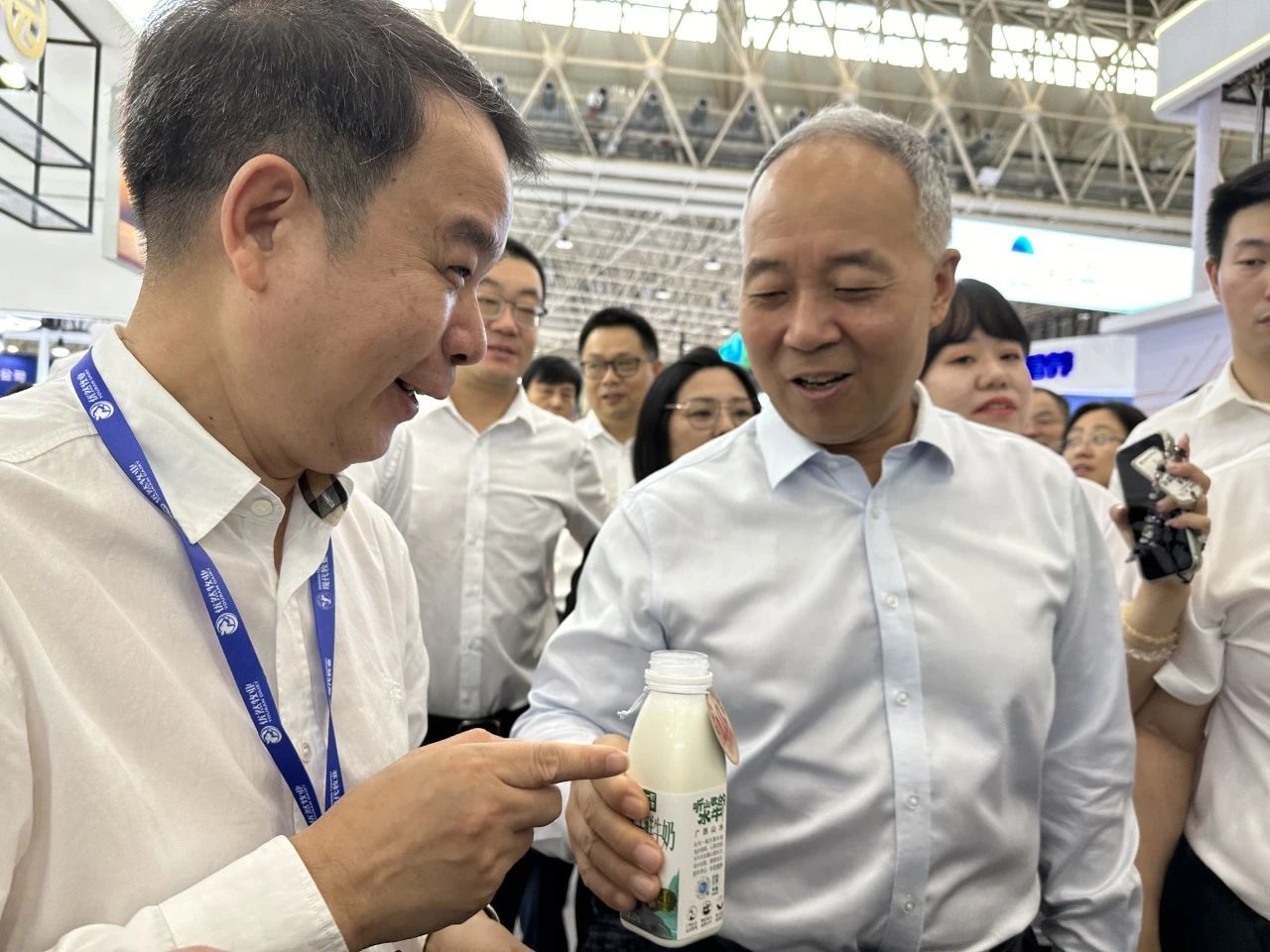 皇氏集團董事長黃嘉棣、副總裁滕翠金、謝秉鏘、伍云等領導,在展區(qū)現場向農業(yè)農村部黨組成員、副部長馬有祥、原農業(yè)部常務副部長劉成果、農業(yè)農村部食物與營養(yǎng)發(fā)展研究所所長王加啟等領導、專家推薦了皇氏乳業(yè)水牛奶,在場領導均對皇氏乳業(yè)的水牛奶給予了高度肯定。