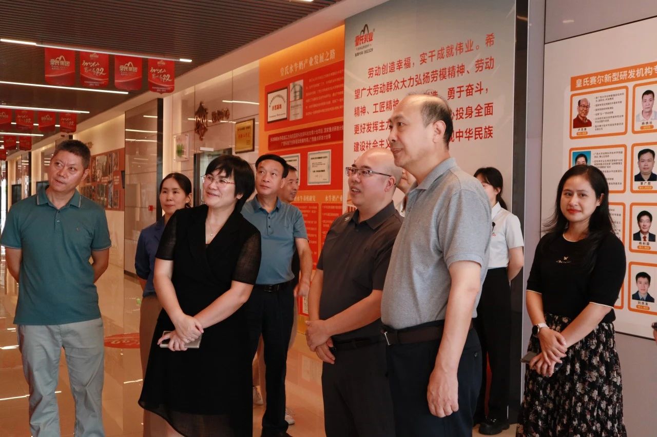 9月3日下午,中國(guó)工程院任發(fā)政院士在自治區(qū)農(nóng)業(yè)農(nóng)村廳劉康副廳長(zhǎng)、廣西水牛研究所黃加祥所長(zhǎng)的陪同下到訪皇氏集團(tuán),就水牛奶產(chǎn)業(yè)發(fā)展開(kāi)展調(diào)研指導(dǎo)工作,皇氏集團(tuán)聯(lián)席總裁王鶴飛,皇氏集團(tuán)副總裁、皇氏賽爾公司董事長(zhǎng)滕翠金,皇氏集團(tuán)副總裁謝秉鏘等公司領(lǐng)導(dǎo)熱情接待并陪同調(diào)研。