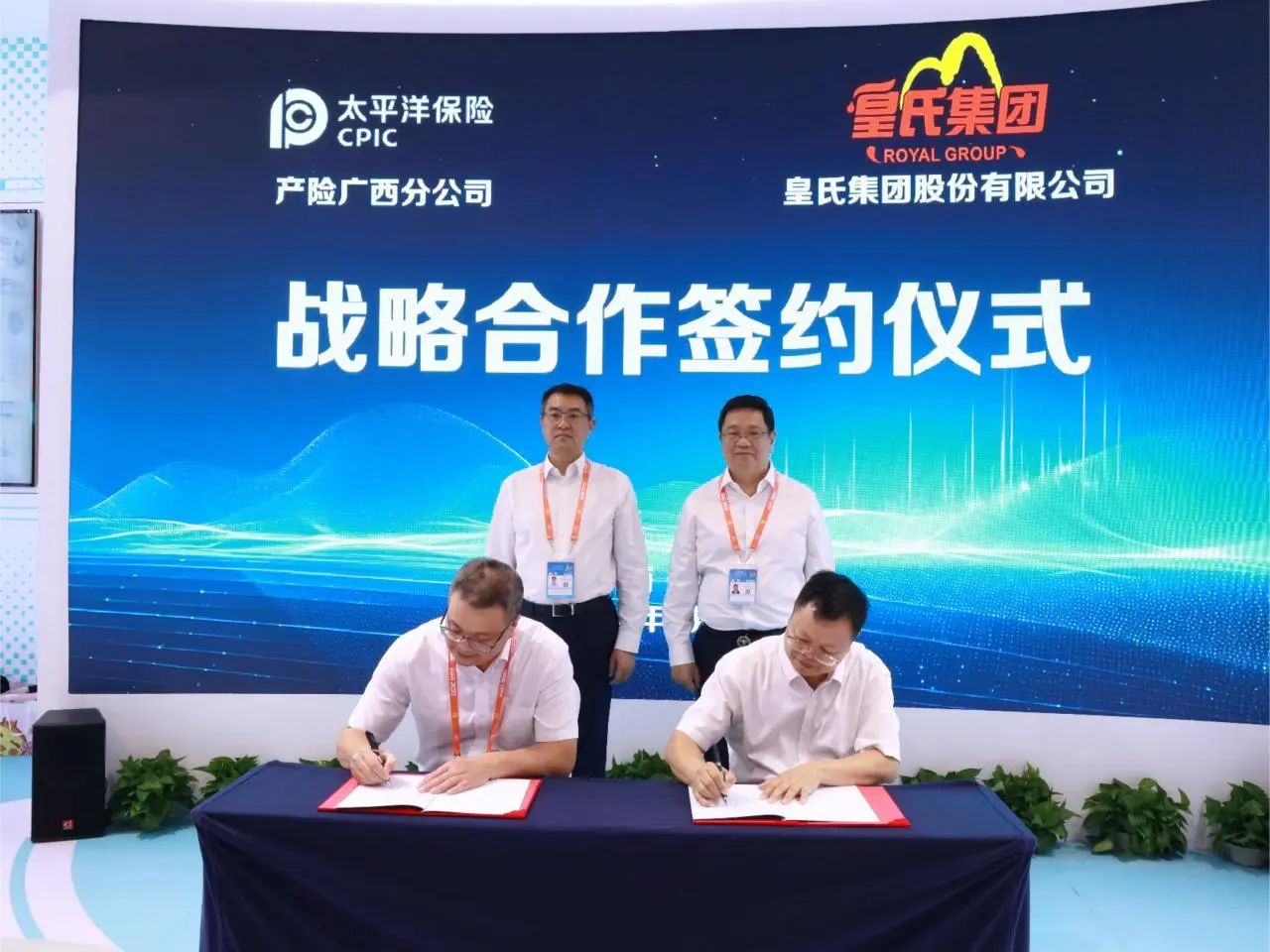 9月27日,皇氏集團(tuán)股份有限公司(以下簡(jiǎn)稱“皇氏集團(tuán)”)與中國(guó)太平洋財(cái)產(chǎn)保險(xiǎn)股份有限公司廣西分公司(以下簡(jiǎn)稱“太保產(chǎn)險(xiǎn)廣西分公司”)戰(zhàn)略合作簽約儀式在南寧市會(huì)展中心舉行。雙方將深入貫徹新發(fā)展理念,進(jìn)一步加強(qiáng)產(chǎn)業(yè)政策與保險(xiǎn)服務(wù)互動(dòng),促進(jìn)農(nóng)業(yè)與保險(xiǎn)合作對(duì)接?;适霞瘓F(tuán)董事長(zhǎng)黃嘉棣、董事長(zhǎng)助理葉遠(yuǎn)箭,太保產(chǎn)險(xiǎn)廣西分公司總經(jīng)理熊力、副總經(jīng)理劉培志出席簽約儀式。