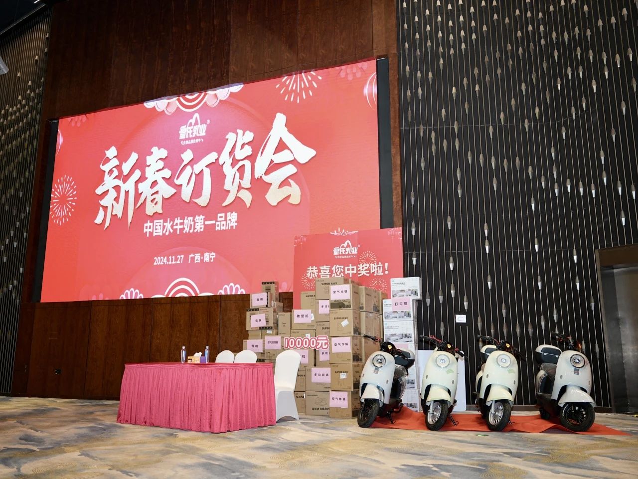 年終歲末,實干爭春。11月27日上午9時,皇氏乳業(yè)華南銷售分公司2025年新春訂貨會在南寧會展豪生大酒店舉辦,來自全國各地的上百家經(jīng)銷商客戶齊聚一堂,現(xiàn)場人聲鼎沸。