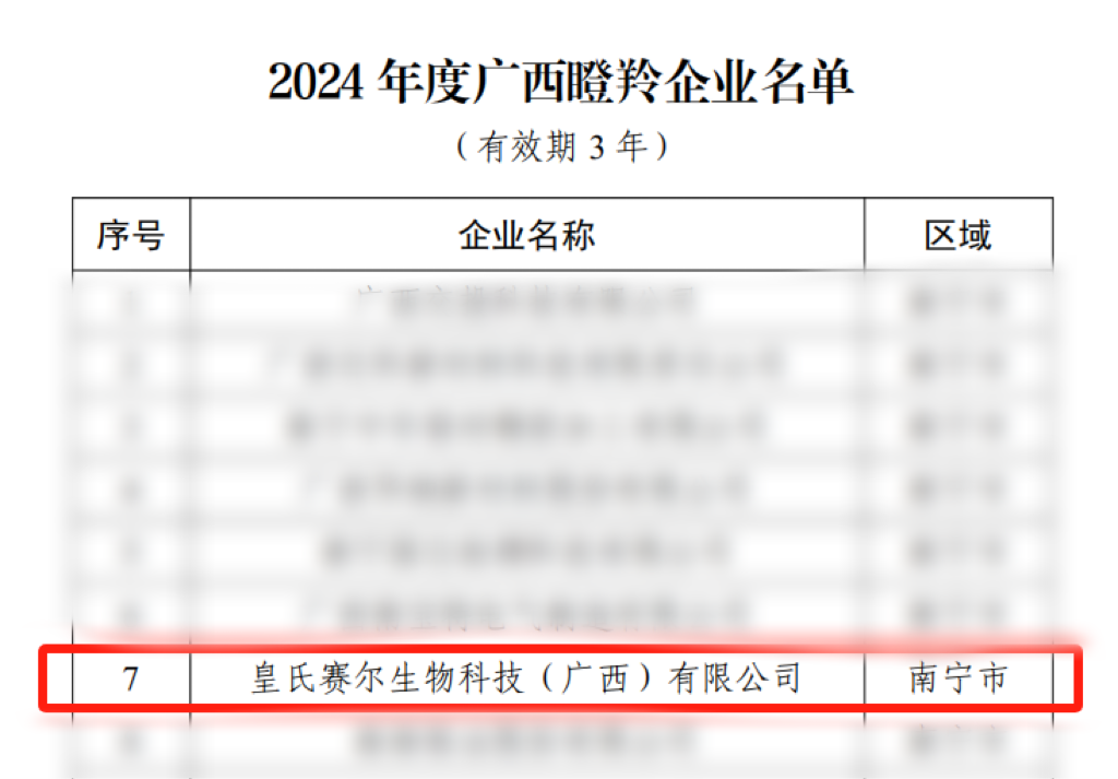 經(jīng)廣西壯族自治區(qū)科學(xué)技術(shù)廳認(rèn)證,皇氏集團(tuán)旗下皇氏賽爾生物科技(廣西)有限公司(以下簡稱“皇氏賽爾”)、巴馬益生菌科技有限公司(以下簡稱“巴馬益生菌”)憑借在專業(yè)創(chuàng)新、研發(fā)投入、成果轉(zhuǎn)化及市場影響力等方面的突出表現(xiàn),通過“2024年度廣西瞪羚企業(yè)”認(rèn)定!充分體現(xiàn)了自治區(qū)對皇氏創(chuàng)新實(shí)力與發(fā)展前景的高度認(rèn)可和期望。