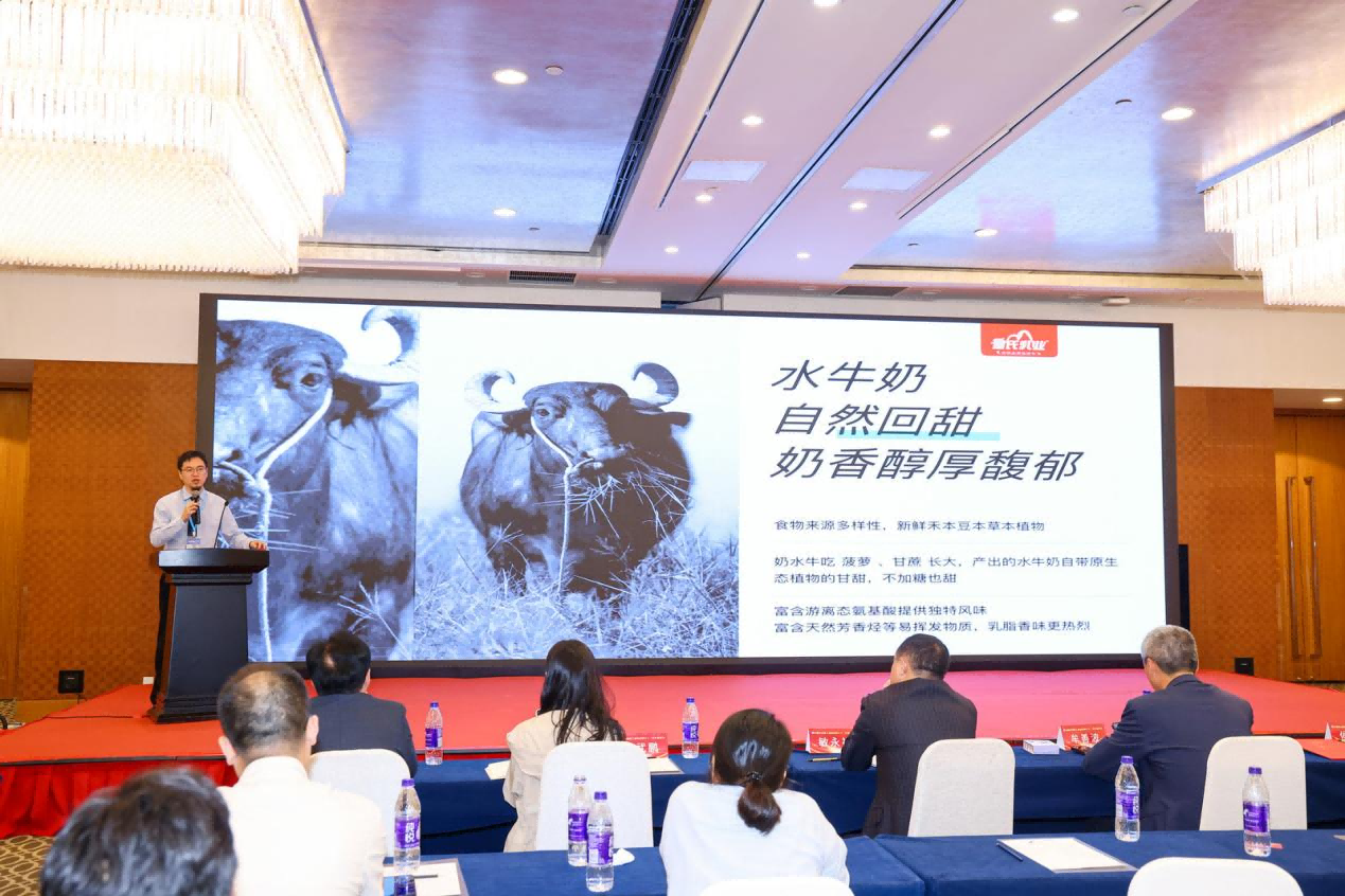 在備受關(guān)注的"特種乳發(fā)展論壇"上,皇氏乳業(yè)集團(tuán)副總經(jīng)理劉驥以《水牛奶產(chǎn)業(yè)藍(lán)圖》為主題,向全球乳業(yè)同仁分享了企業(yè)深耕特色乳品賽道的創(chuàng)新實踐。他指出,依托廣西得天獨厚的奶水牛資源優(yōu)勢,皇氏乳業(yè)通過"產(chǎn)學(xué)研用"一體化創(chuàng)新模式,已構(gòu)建起涵蓋種源培育、智慧養(yǎng)殖、精深加工的全產(chǎn)業(yè)鏈體系系統(tǒng)闡述了皇氏集團(tuán)在水牛奶領(lǐng)域的戰(zhàn)略布局。他指出,隨著消費升級,高營養(yǎng)價值的水牛奶正成為乳制品市場的"黃金賽道"。皇氏乳業(yè)依托廣西特色資源,已構(gòu)建從奶水牛良種繁育、智慧牧場到精深加工的全產(chǎn)業(yè)鏈體系,當(dāng)前皇氏水牛奶產(chǎn)品填補了高端乳制品市場空白。