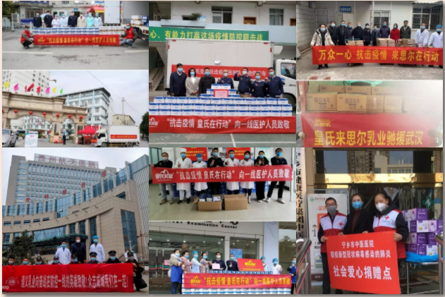 日前,收治了400多名新冠肺炎患者的武漢亞心總醫(yī)院向全社會發(fā)出捐贈公告,在了解到醫(yī)院對牛奶等營養(yǎng)物資的迫切需求后,皇氏集團當即響應(yīng),迅速籌備物資,克服困難,30萬、10多噸物資被火速送往防疫前線。