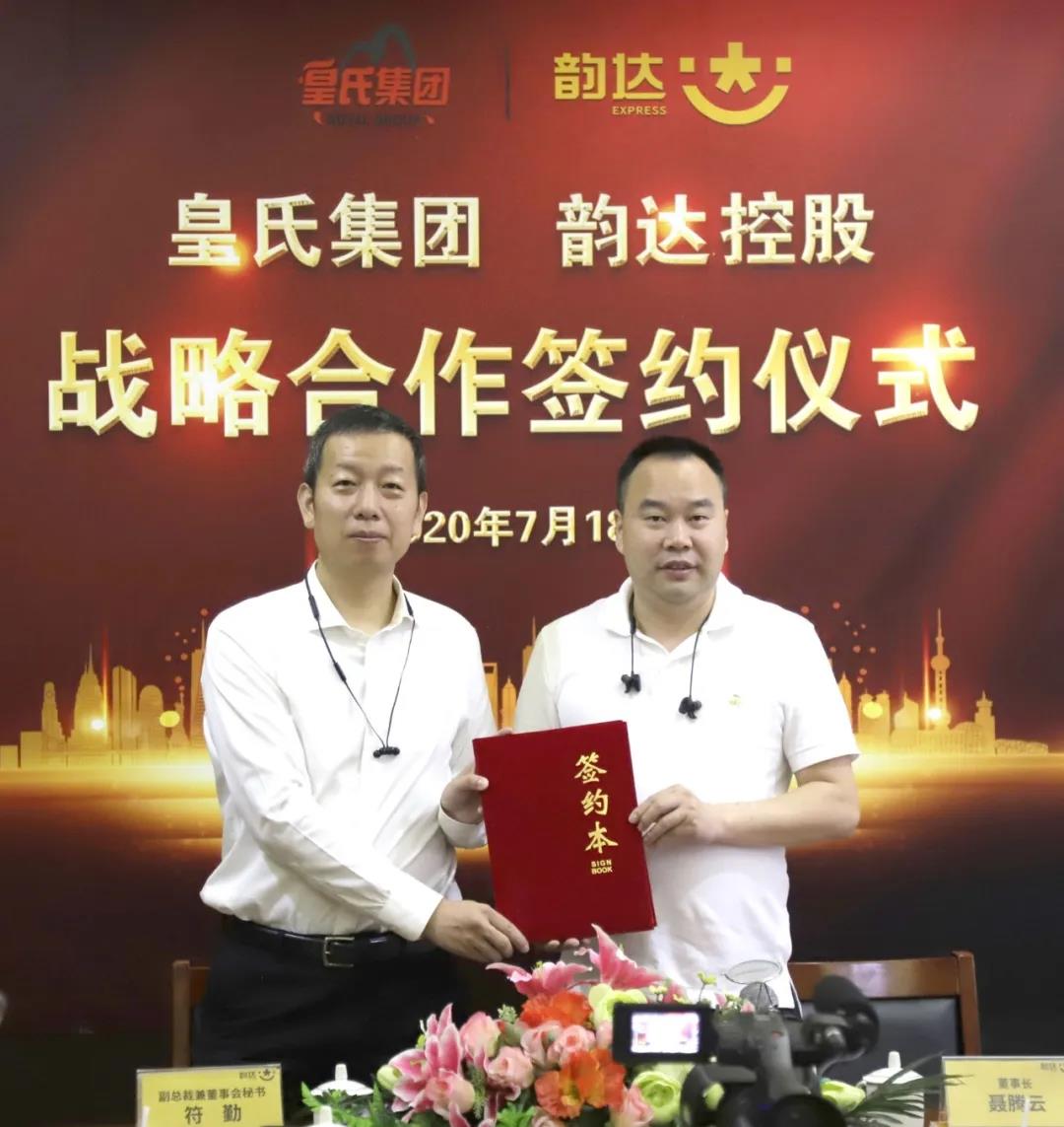 皇氏集團簽約代表(上)及韻達控股簽約代表(下)