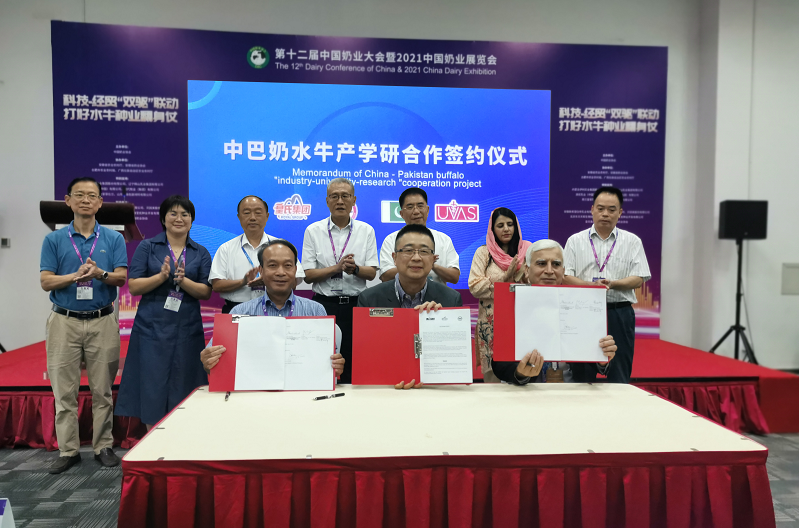 在巴基斯坦駐廣州總領事的見證下,皇氏集團、水牛研究所、巴基斯坦拉合爾獸醫(yī)動物科學大學三方成功舉行了中巴奶水牛產(chǎn)學研合作的簽約,皇氏集團奶水牛產(chǎn)業(yè)升級項目再次實現(xiàn)跨越式發(fā)展!