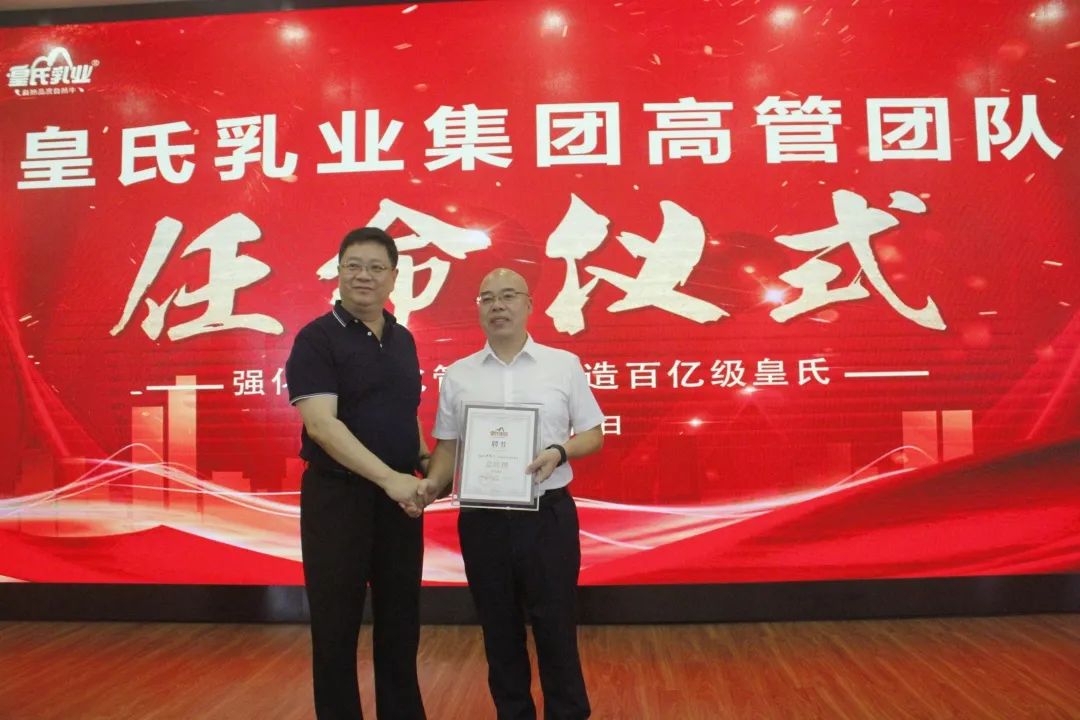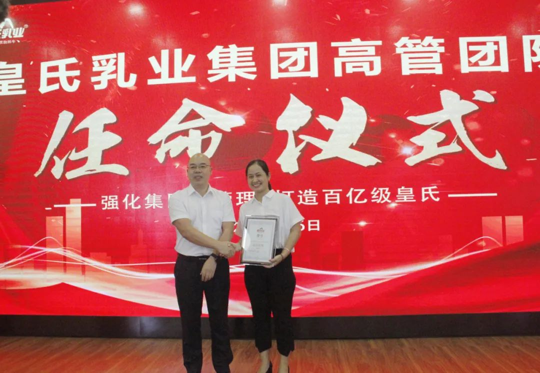 會議舉行了皇氏乳業(yè)集團成立及高管團隊任命儀式,皇氏集團黃嘉棣董事長宣布皇氏乳業(yè)集團高管團隊任命并頒發(fā)聘書。隨后,高管團隊進行了莊嚴的就職宣誓,誓言錚錚,激蕩在耳,表達了皇氏乳業(yè)集團高管團隊們“披荊斬棘創(chuàng)新篇 不達百億不罷休”的強大信心和堅定決心!