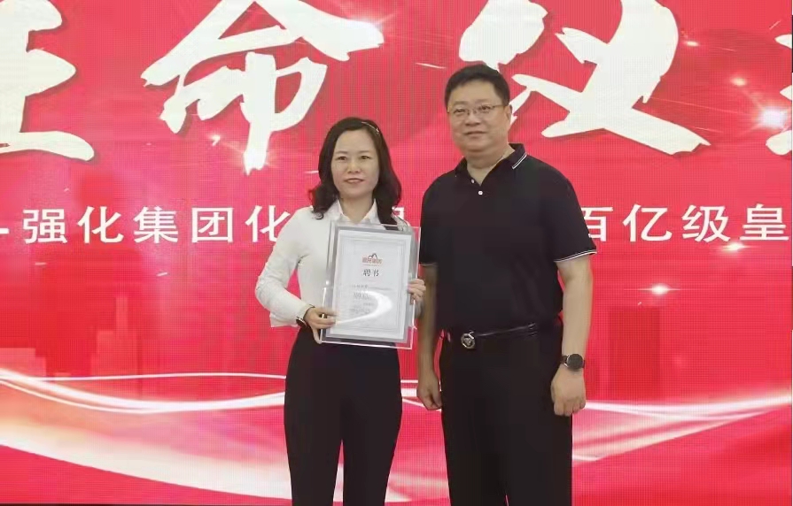 ▲黃嘉棣董事長為孫紅霞副總經(jīng)理頒發(fā)聘書