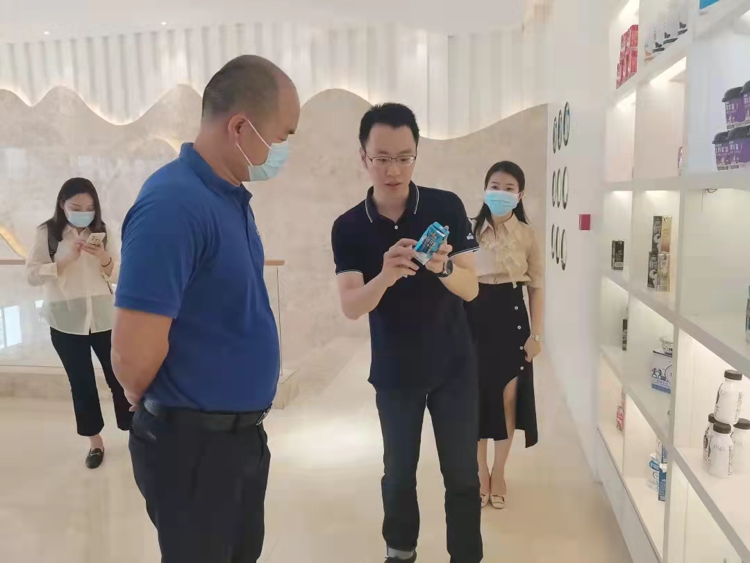 調(diào)研組先后參觀了皇氏中央工廠產(chǎn)品展示區(qū)、現(xiàn)代化乳品生產(chǎn)車間、技術(shù)研發(fā)中心,智能立體倉庫等功能區(qū)域,秦俊杰總監(jiān)向調(diào)研組重點介紹了近年來集團在發(fā)展水牛奶產(chǎn)業(yè)上取得的一系列成果,以及目前集團在奶源建設(shè)、奶水牛種源戰(zhàn)略布局、奶水牛品種改良等方面的情況。參觀過程中,皇氏中央工廠的產(chǎn)能布局、功能區(qū)的設(shè)置以及自動化立體庫的智能程度給調(diào)研組留下了深刻的印象。