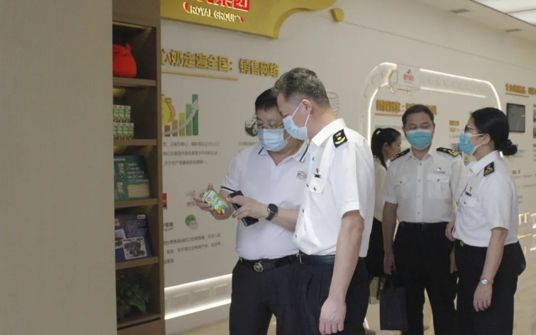 陳竹副關(guān)長一行首先通過觀看企業(yè)宣傳片了解了集團(tuán)的基本概況和各業(yè)務(wù)板塊,隨后在黃嘉棣董事長等領(lǐng)導(dǎo)的陪同下實地參觀了年產(chǎn)20萬噸的皇氏中央工廠。在參觀過程中,通過黃嘉棣董事長的詳細(xì)介紹,陳竹副關(guān)長一行對皇氏集團(tuán)的自有牧場、銷售市場、奶水牛種源建設(shè)等方面的情況都有了一定的了解。