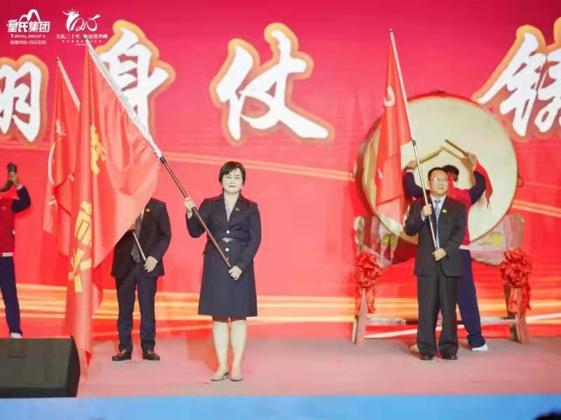 戰(zhàn)鼓擂鳴催豪情,沖鋒號角振人心。隨著激昂奮進的號角聲響起,黃嘉棣董事長分別為皇氏賽爾生物科技(廣西)有限公司總經(jīng)理滕翠金、皇氏乳業(yè)集團總經(jīng)理王鶴飛進行授旗,將帥令下,萬軍齊發(fā),帶著必勝的決心,誓言錚錚,催人奮進。錨定新目標(biāo),奮進新征程,未來皇氏集團將充分發(fā)揮行業(yè)龍頭企業(yè)的領(lǐng)引作用,勇?lián)a(chǎn)業(yè)鄉(xiāng)村振興使命,踐行可持續(xù)發(fā)展理念,以實際行動助推廣西乃至全國水牛奶產(chǎn)業(yè)跨越式發(fā)展!