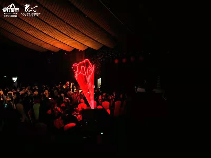 隨著鏗鏘有力的音樂聲響起,慶典迎來了最高潮的時刻,一頭威武健碩的激光紅牛開始繞場奔騰,寓意著未來皇氏集團將持續(xù)發(fā)揚“三牛精神”,以勢在必行、志在必得的決心和信心,凝心聚勢,共筑皇氏更加美好輝煌的未來!