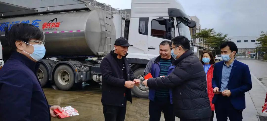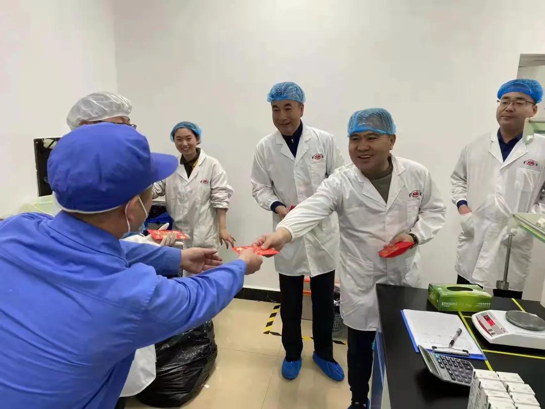 2022年2月1日,農(nóng)歷大年初一,到處都洋溢著喜慶祥和的節(jié)日氛圍。一大早,皇氏集團(tuán)董事長(zhǎng)黃嘉棣、副董事長(zhǎng)何海晏、乳業(yè)集團(tuán)副總經(jīng)理農(nóng)素貞等領(lǐng)導(dǎo)來(lái)到皇氏中央工廠(chǎng),向春節(jié)期間仍堅(jiān)守崗位、敬業(yè)奉獻(xiàn)的廣西皇氏乳業(yè)公司員工送去新春的問(wèn)候和祝福。