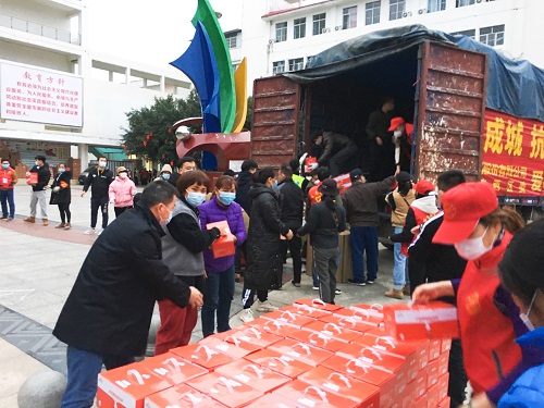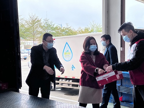 “承諾一千,不如落實(shí)一件?!睘榱艘宰羁斓乃俣葘⑽镔Y送到疫區(qū),皇氏集團(tuán)一切流程從簡,僅用一天時(shí)間,全力以赴,爭分奪秒,完成了從方案策劃到整裝出發(fā),在民建廣西區(qū)委的協(xié)調(diào)支持下,價(jià)值超20萬元人民幣的3000件牛奶和1000盒益生菌經(jīng)由廣西紅十字會組織專車護(hù)送,于2月10日運(yùn)抵百色疫區(qū)。愛心專車滿載著皇氏集團(tuán)的深厚情誼,在百色疫情防控決戰(zhàn)決勝的緊要關(guān)頭,共同筑牢防疫屏障,成為百色抗疫背后堅(jiān)實(shí)的力量。