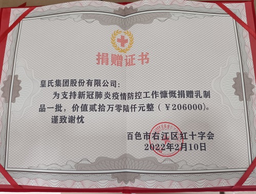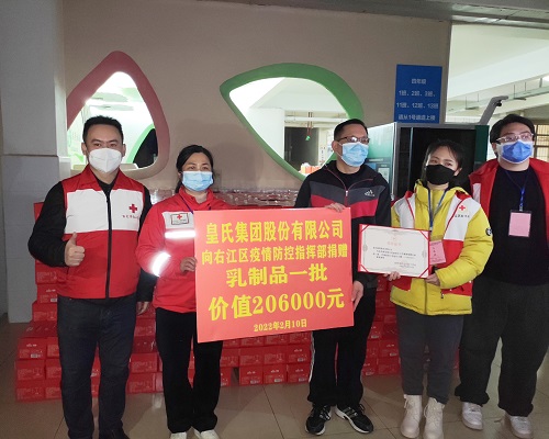 聚愛成河,聚沙成塔。作為農(nóng)業(yè)產(chǎn)業(yè)化國家重點(diǎn)龍頭企業(yè)、廣西水牛奶產(chǎn)業(yè)領(lǐng)先企業(yè),皇氏集團(tuán)積極支持抗疫防控工作,對支援本土抗擊疫情更是義不容辭。在獲知百色疫情蔓延的情況初期,皇氏集團(tuán)便積極響應(yīng)民建廣西區(qū)委的號召,為奮戰(zhàn)在百色市抗疫一線的工作人員提供必要的營養(yǎng)支持,為百色市人民群眾日常生活保證充足的民生供給,與百色人民攜手共渡難關(guān),全力打贏這場抗疫阻擊戰(zhàn)。