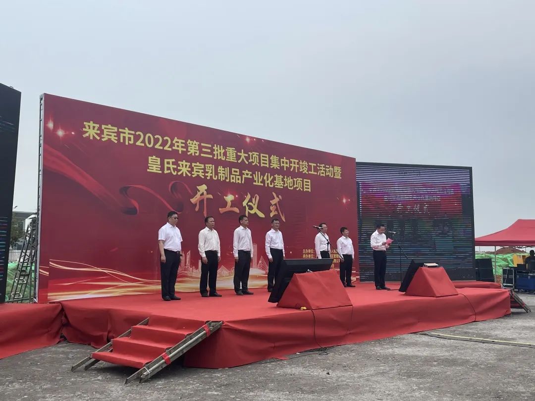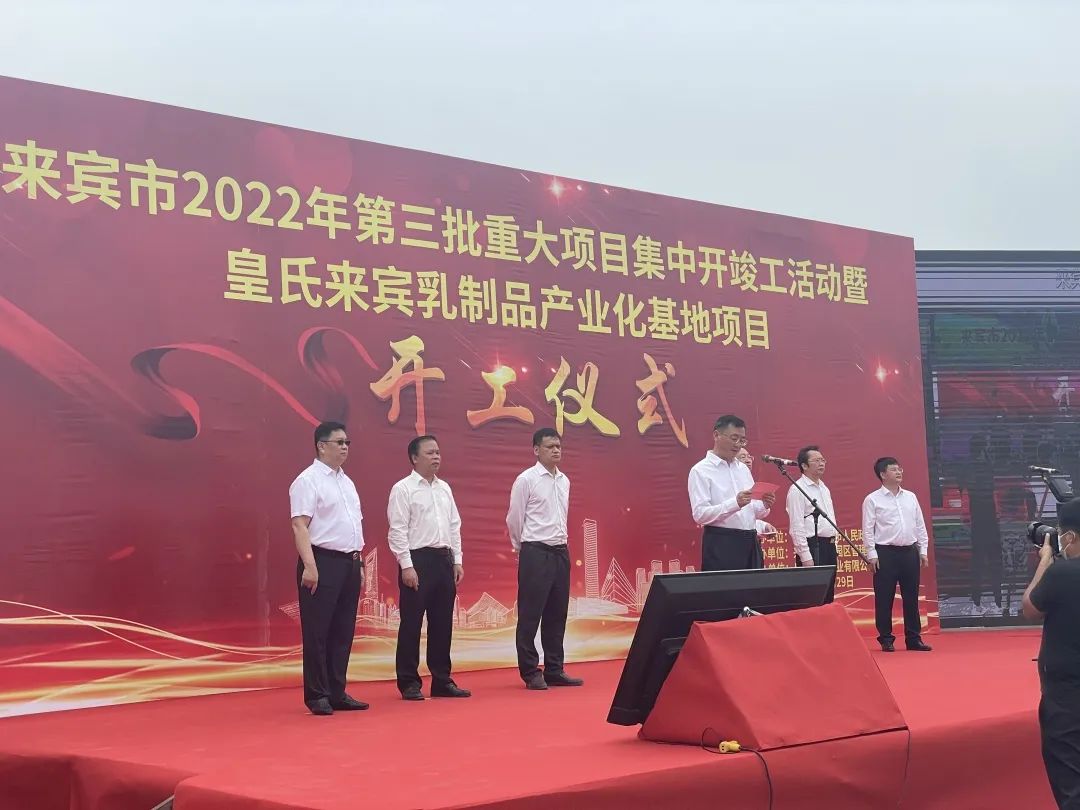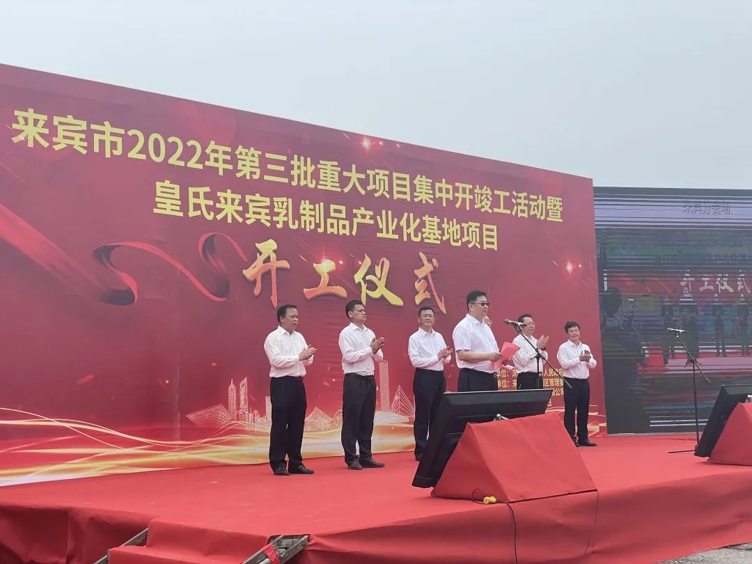 4月29日上午,來賓市2022年第三批重大項目集中開竣工儀式暨皇氏來賓乳制品產(chǎn)業(yè)化基地項目開工儀式在皇氏集團(tuán)位于來賓市高新技術(shù)產(chǎn)業(yè)開發(fā)區(qū)的項目園區(qū)隆重舉行,來賓市市長廖和明等主要領(lǐng)導(dǎo)、市工業(yè)園區(qū)主要領(lǐng)導(dǎo)及來自6個來賓市重大項目業(yè)主代表參加,皇氏集團(tuán)董事長兼總裁黃嘉棣作為業(yè)主代表發(fā)表講話。這是繼皇氏集團(tuán)與來賓市政府在4月28日正式簽訂戰(zhàn)略合作協(xié)議以來,集團(tuán)的又一項重大戰(zhàn)略部署,標(biāo)志著皇氏在乳業(yè)板塊高質(zhì)量發(fā)展的道路上再向前邁出了堅實(shí)的一大步。