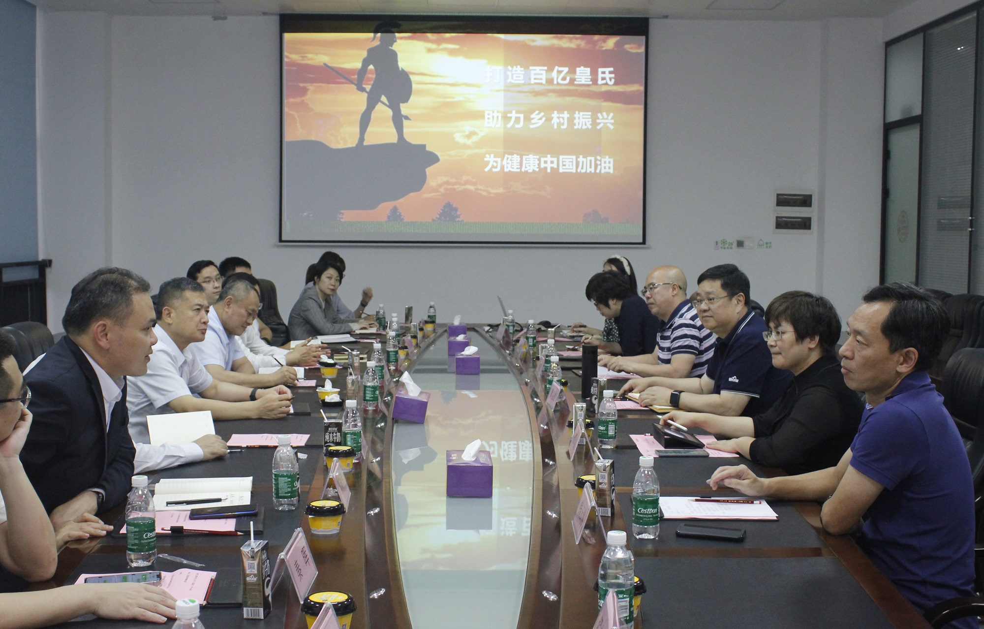 觀結(jié)束后,王立行長(zhǎng)一行與我司領(lǐng)導(dǎo)共同開(kāi)展了以“助推產(chǎn)業(yè)升級(jí),助力鄉(xiāng)村振興,借力國(guó)家政策建好產(chǎn)業(yè)鏈”為主題的交流座談會(huì)。會(huì)上皇氏集團(tuán)副總裁、皇氏乳業(yè)集團(tuán)總經(jīng)理王鶴飛詳細(xì)介紹了皇氏乳業(yè)板塊的生產(chǎn)經(jīng)營(yíng)情況,戰(zhàn)略發(fā)展目標(biāo)及未來(lái)規(guī)劃;皇氏集團(tuán)副總裁、皇氏賽爾生物科技公司董事長(zhǎng)兼總經(jīng)理滕翠金匯報(bào)了皇氏賽爾奶水牛產(chǎn)業(yè)升級(jí)項(xiàng)目及相關(guān)進(jìn)展情況。