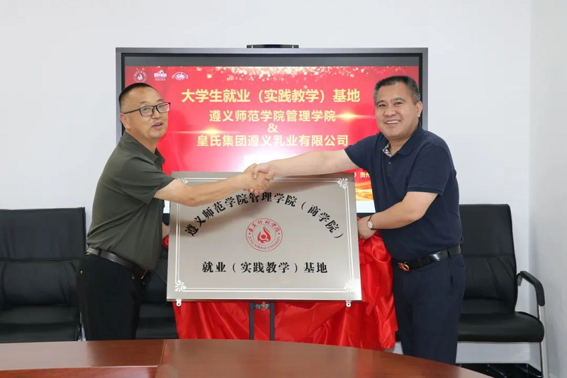 為帶動當?shù)鼐蜆I(yè)和推動經(jīng)濟發(fā)展,進一步深化產(chǎn)教融合,做好學校為企業(yè)輸送人才的準備,2022年7月13日,皇氏集團遵義乳業(yè)有限公司與遵義師范學院舉行了校企合作的座談會暨揭牌儀式。