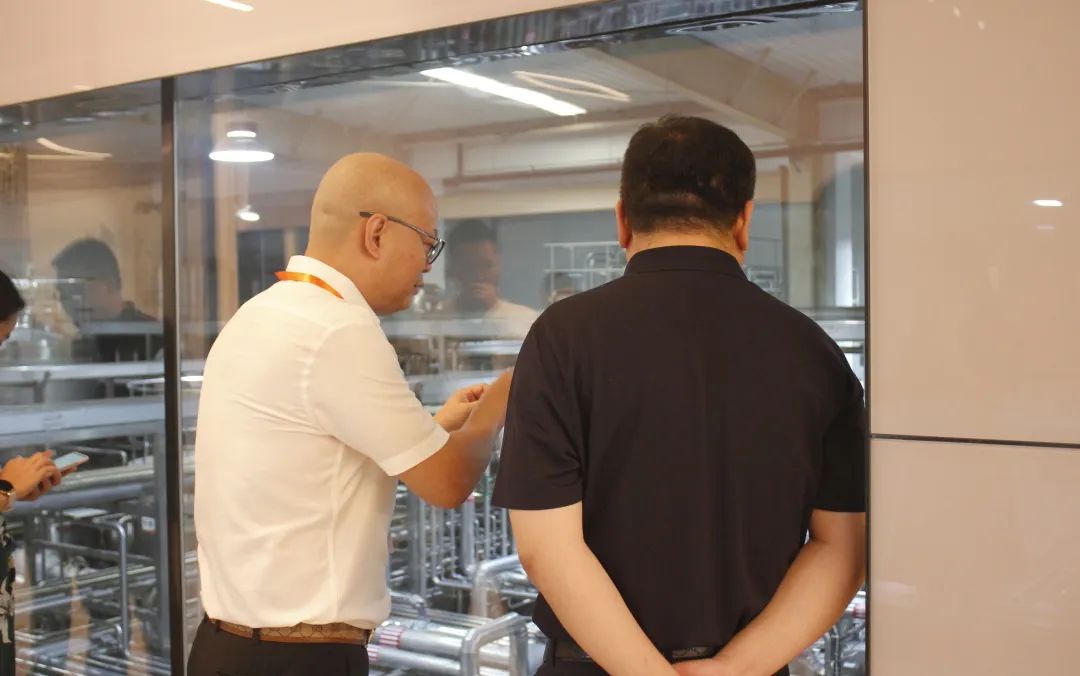 南寧金融集團黨委書記、董事長關(guān)俊在石總等領(lǐng)導(dǎo)的陪同下通過觀看企業(yè)宣傳片、參觀皇氏中央工廠,簡要了解了皇氏集團的品牌背景、發(fā)展歷程、業(yè)務(wù)分布以及產(chǎn)能布局。在陪同領(lǐng)導(dǎo)的詳細(xì)介紹下,關(guān)書記一行對皇氏集團在乳業(yè)板塊的智能化生產(chǎn)、技術(shù)研發(fā)、渠道多元等方面的探索與進步給予了肯定和贊賞。
