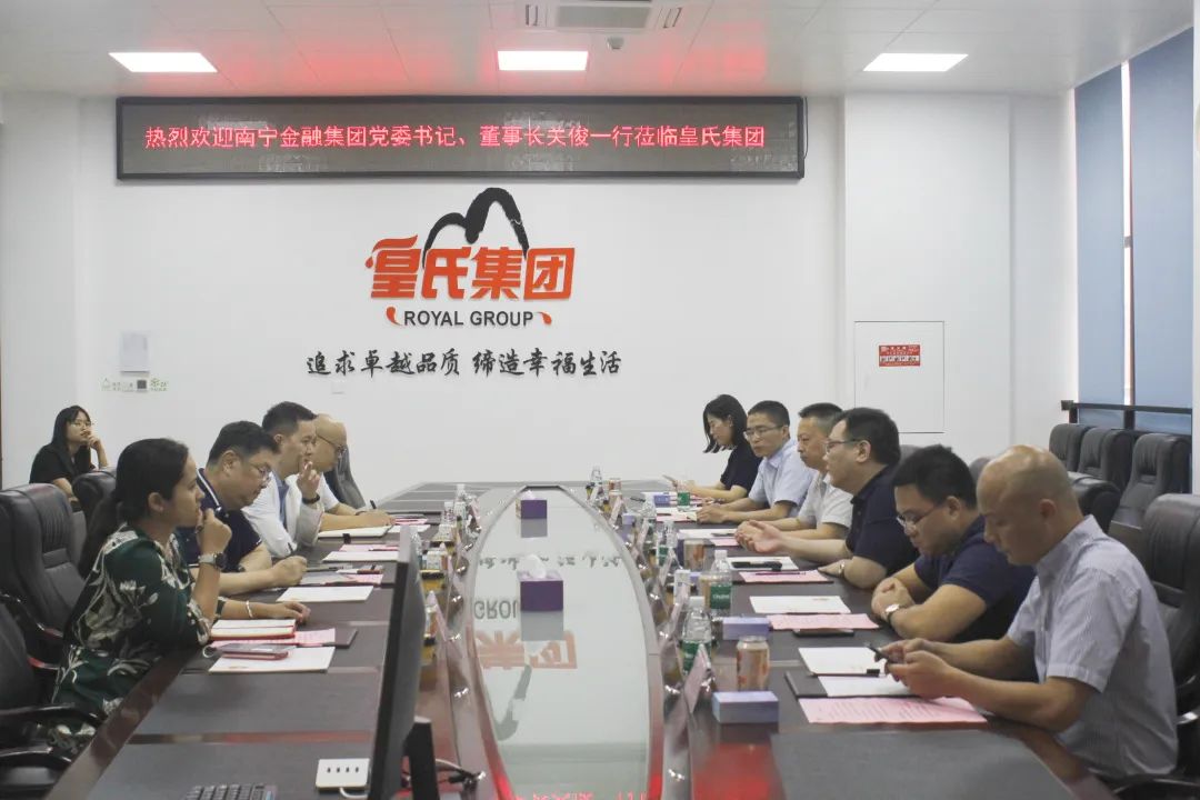 參觀結(jié)束后,雙方本著“勠力同心,共謀發(fā)展”的目標(biāo)在會議室進行座談,皇氏集團董事長黃嘉棣出席座談,與南寧金融集團黨委書記、董事長關(guān)俊一行共同探討如何結(jié)合區(qū)域和自身特點,實現(xiàn)規(guī)劃、產(chǎn)業(yè)、項目和效益新突破,共同激發(fā)釋放合作潛力,尋求共同合作發(fā)展機會。
