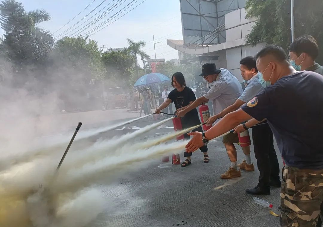 本環(huán)節(jié)教員示范了水帶的快速展開方式以及滅火器的使用方法,讓員工通過(guò)實(shí)戰(zhàn)操作來(lái)牢記滅火器材的使用方法。