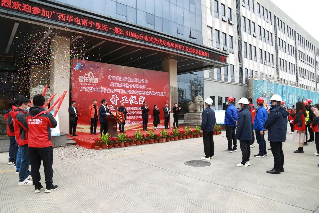2022年12月8日上午,廣西華電南寧皇氏一期2.51MWp分布式光伏發(fā)電項目開工儀式在皇氏中央工廠正式舉行。