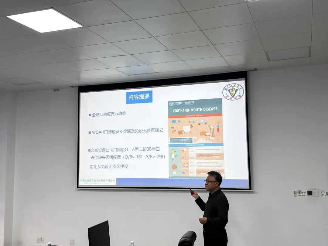 內(nèi)蒙古必威安泰生物科技有限公司技術(shù)總監(jiān)謝文強介紹了目前口蹄疫在世界范圍內(nèi)的流行趨勢和標(biāo)記型口蹄疫疫苗的優(yōu)勢及應(yīng)用。